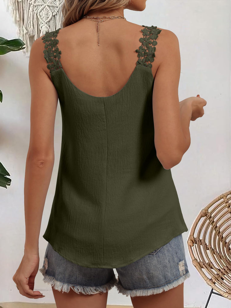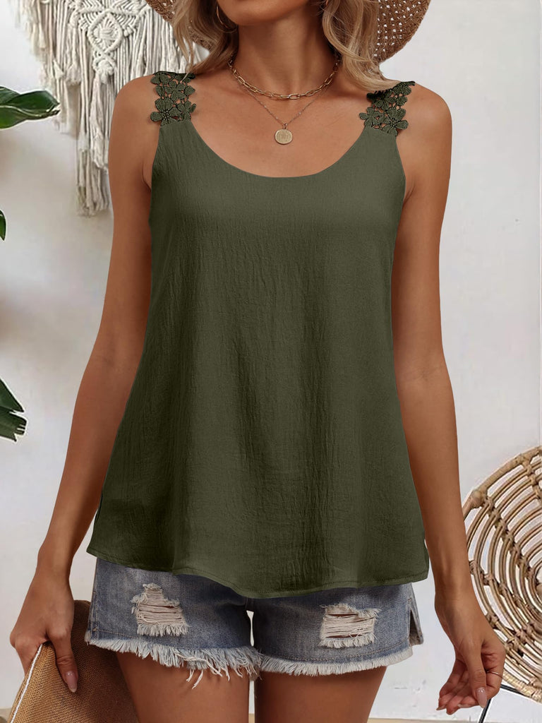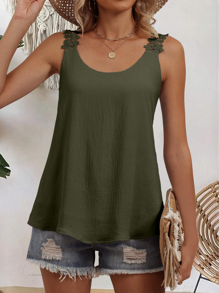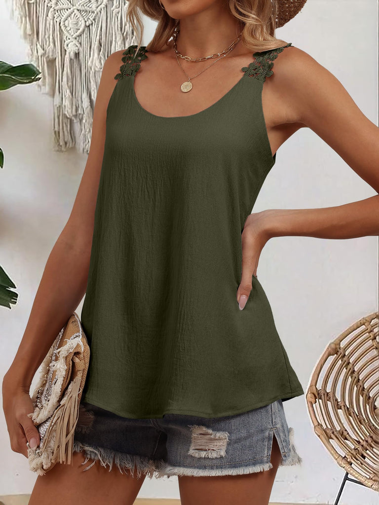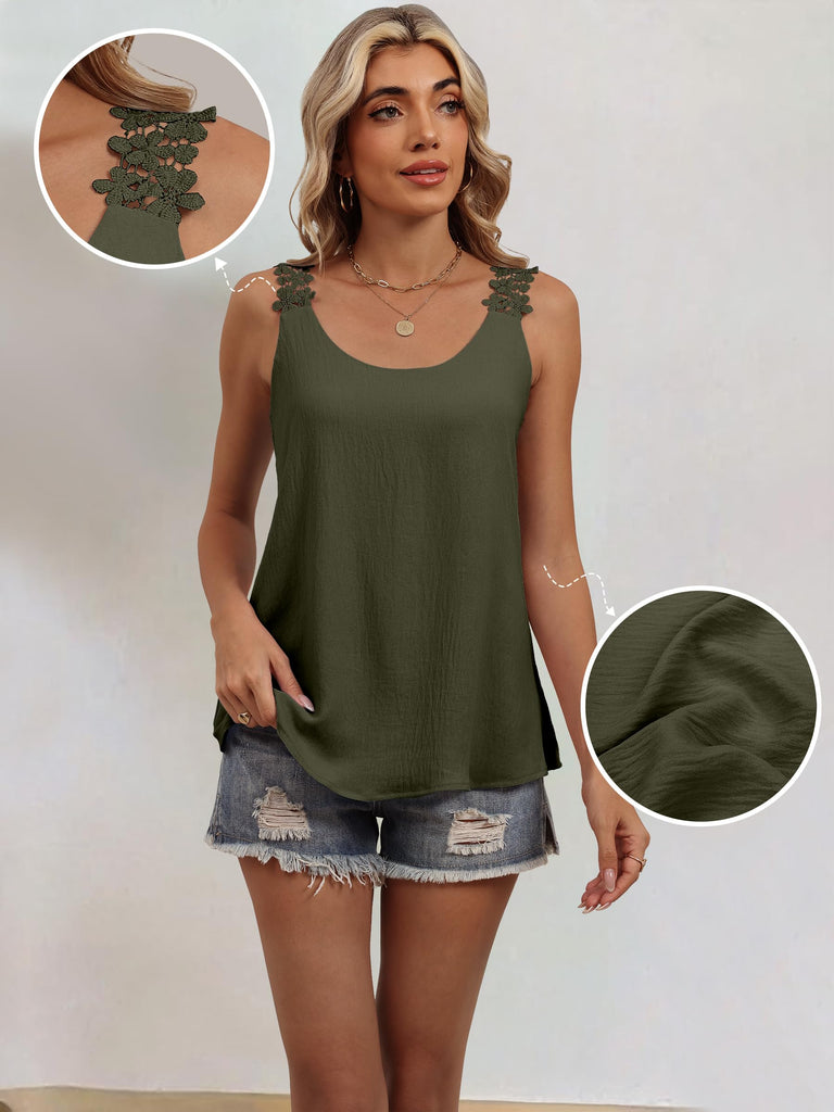 - Features - Women’s tank tops, scoop neck, sleeveless tops, crochet lace shoulder strap, flowy fashion tanks, camisole shirts, cute summer tops. This women top is perfect for a variety of occasions, such as beach, vacation, travel, dating, casual daily wear.
