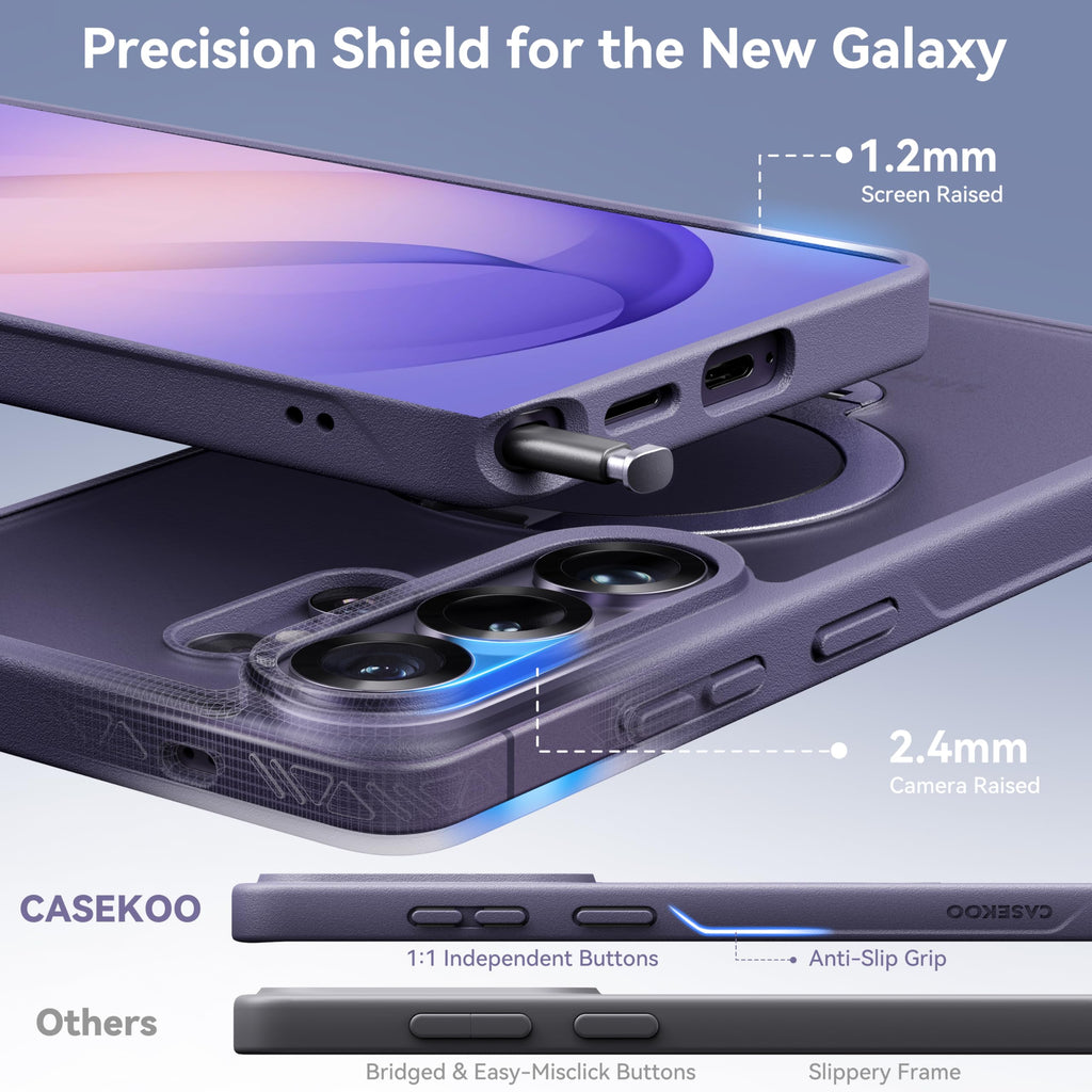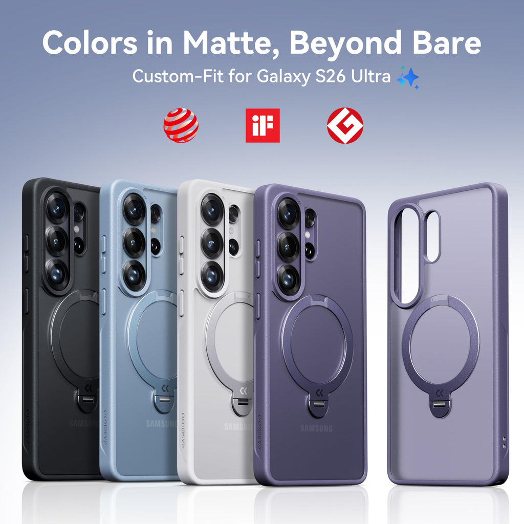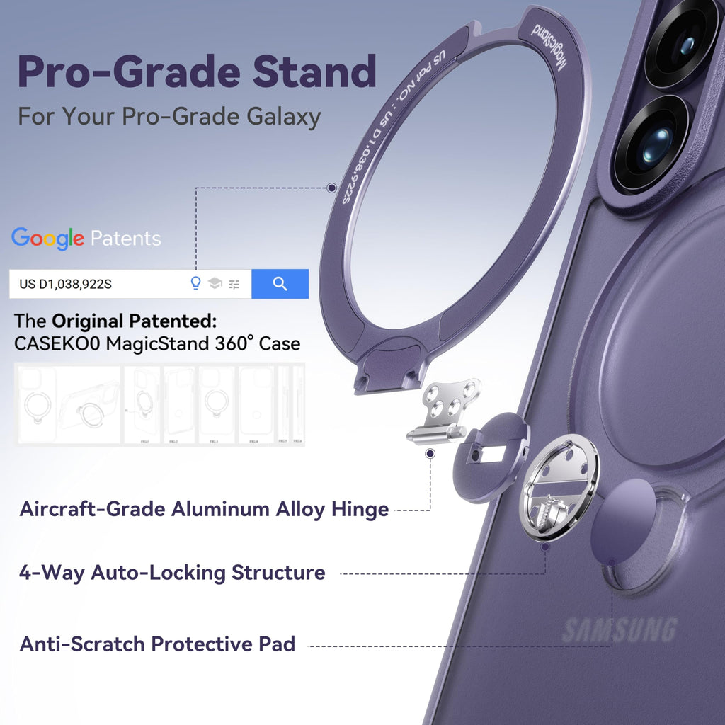 - Patented 3-in-1 Versatile Invisible Kickstand: The patent number (US D1,038,922 S) is clearly printed on the back of the kickstand. CASEKOO is the first to engineer a case compatible with Samsung's that features MagicStand technology. It combines multiple functions into one: 360° spin stand, ring holder, magnetic function, wireless charging compatibility, and military-grade protection—freeing your hands to multitask, make your mobile life more convenient (for Samsung Galaxy S26 Ultra Case)
