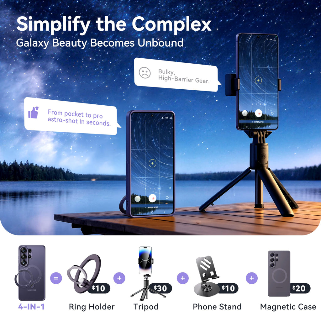 - Pioneering MagicStand Pro Case - Design Award Winner: The upgraded version features a 360° rotating base and horizontally/vertically adjustable ring with aircraft-grade aluminum alloy 4-way auto-locking structure and high-carbon steel hinges, it achieves 200% enhanced durability and zero failures in 50,000+ lab tests (6-year lifespan with 23 daily folds). Adjust freely for optimal viewing: watch videos horizontally, make vertical hands-free calls, or capture stable photos with ring holder. Whether tables are high or low, or users are tall or short, it adapts seamlessly to any position for comfortable viewing to reduce neck strain