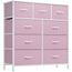 Details: DWVO Dresser with 9 Drawers, Fabric Storage Dresser, Closet Dresser & Chest of Drawers for Living Room, Closets - Sturdy Steel Frame, Wooden Top & Easy Pull Fabric Bins(Pink)