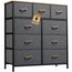 DWVO Dresser with 9 Drawers - Fabric Storage Tower, Organizer Unit for Living Room, Hallway, Closets - Sturdy Steel Frame, Wooden Top & Easy Pull Fabric Bins (Dark Black Grey)