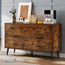 DWVO Rustic Brown 6 Drawer Dresser, 47" W Large Double Dresser Chest of Drawers, Modern Wood Storage Organizer with Black Metal Handles & Anti-Tipping Device for Hallway, Entryway