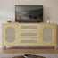 DWVO TV Stand 3 Drawer Dressers Storage Cabinet Natural Rattan Oak Wooden Chest with Golden Handles - Modern Large Closet Boho for Living Room/Hallway/Entryway