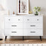 - Minimalist Home Decor: The white large double dresser chest of drawers has silver metal decorative strips attached to the edges of the top panels, round and square gold handles on the drawers, and metal support legs on the bottoms, giving it a minimalist look that can be matched to all kind of decorating styles