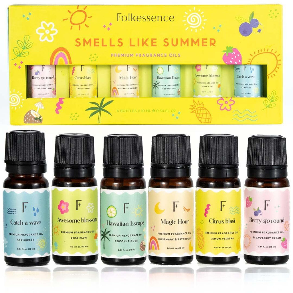 Folkulture Smells Like Summer Essential Oils Set for Diffuser | Set of 6 Fresh & Fruity Diffuser Oils | Coconut, Strawberry, Lemon & Herbal Scents | Everyday Home Fragrance Oils Gift Set