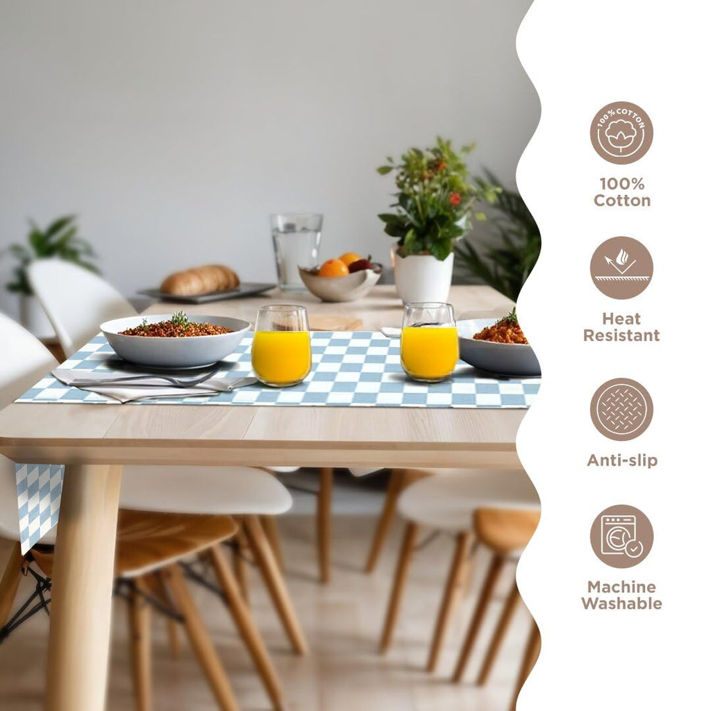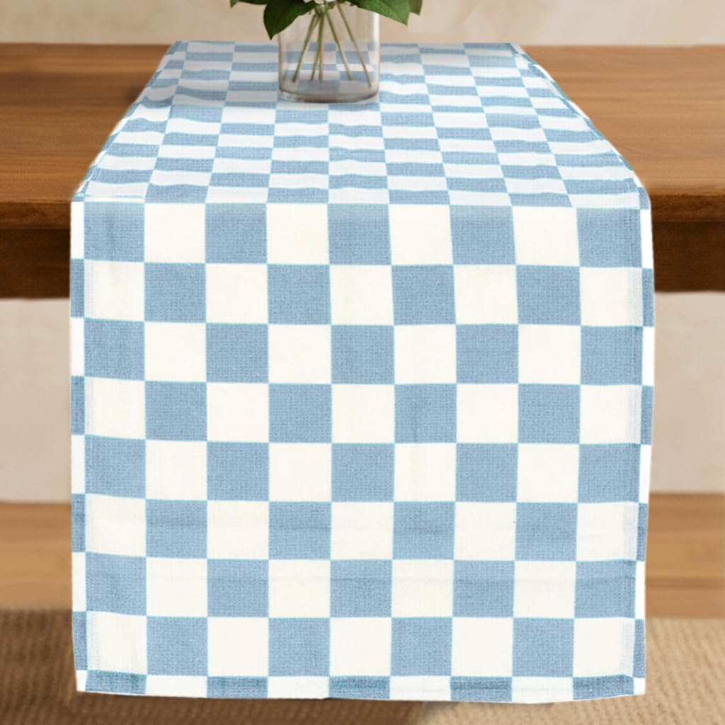- Design & Material: Made from 100% cotton, this checkered sky blue and white table runner offers a soft, breathable fabric with a timeless pattern, adding freshness and elegance to everyday dining table decor.