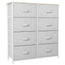 - UNIVERSALLY COMPLEMENTARY- Premium light grey fabric drawers, with sturdy white metal frame and wooden tabletop; Enjoy modern scent and stylish aesthetics that easily complements various living spaces: living rooms, hallways, entryways, closets etc
