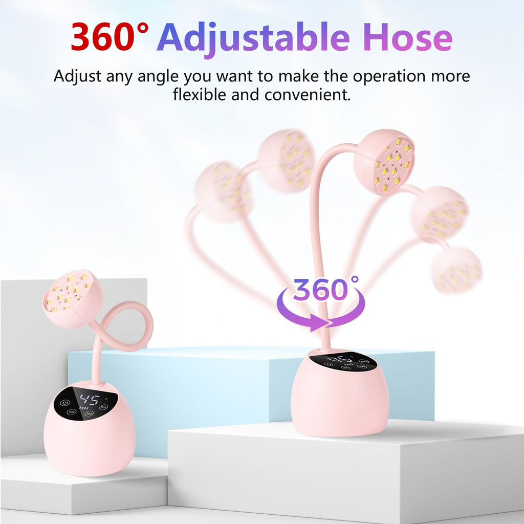 - Gooseneck Design for Targeted, Angle-Perfect Curing: The flexible gooseneck allows 360ยฐ adjustable positioning, delivering focused curing exactly where you need itโperfect for thumbs, pinkies, raised designs, and detailed nail art that box lamps often miss.