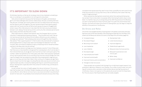 This book about mindfulness for beginners includes: An intro to mindfulness―Find essential info about what mindfulness is (and isn't), its origins, its benefits, and more. Guidance for getting started―Learn the building blocks of a mindfulness practice: attentional breathing, awareness and insight, taking time to slow down, and connecting with your values. A range of exercises―Foster mindfulness with a wide variety of activities, including meditations, writing and drawing prompts, quizzes, body scans, yoga poses, and more.