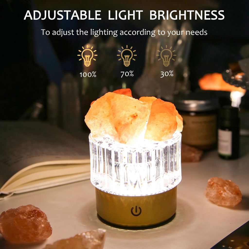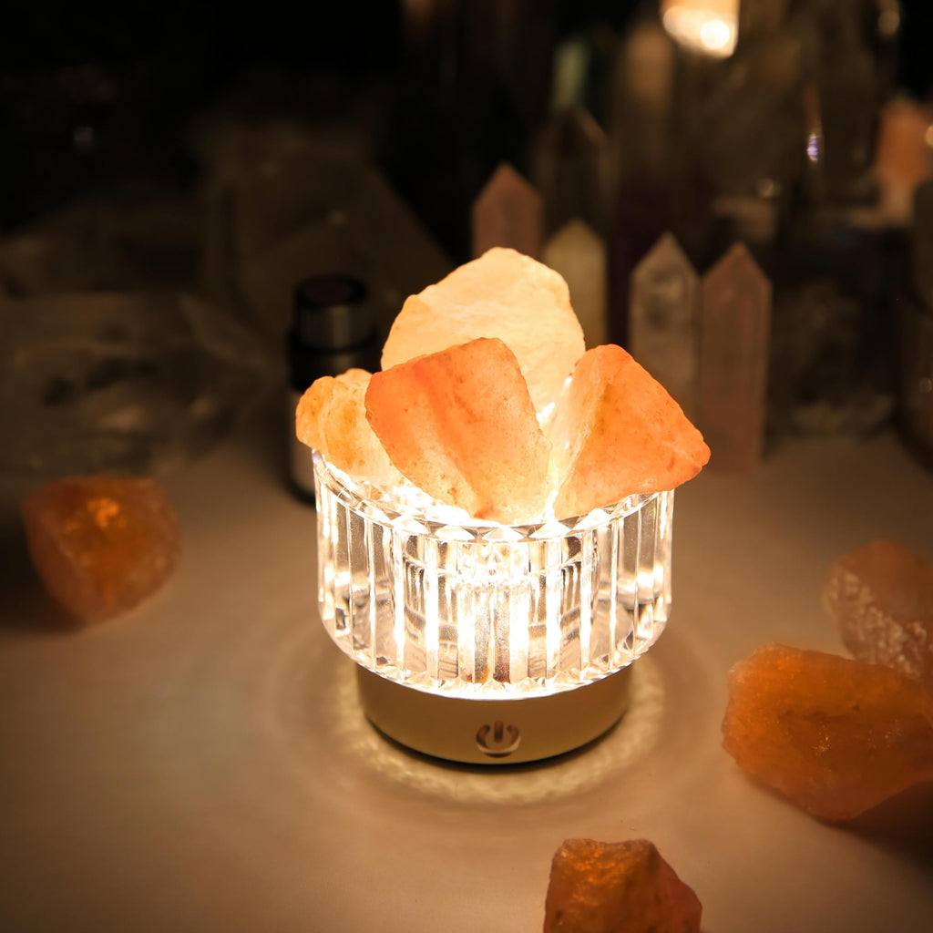- Crystal Vessel Design: Features a sleek, ribbed crystal container (instead of a wooden base) that amplifies the salt's warm light, adding a modern, luminous touch to any space while keeping the salt pieces securely displayed.