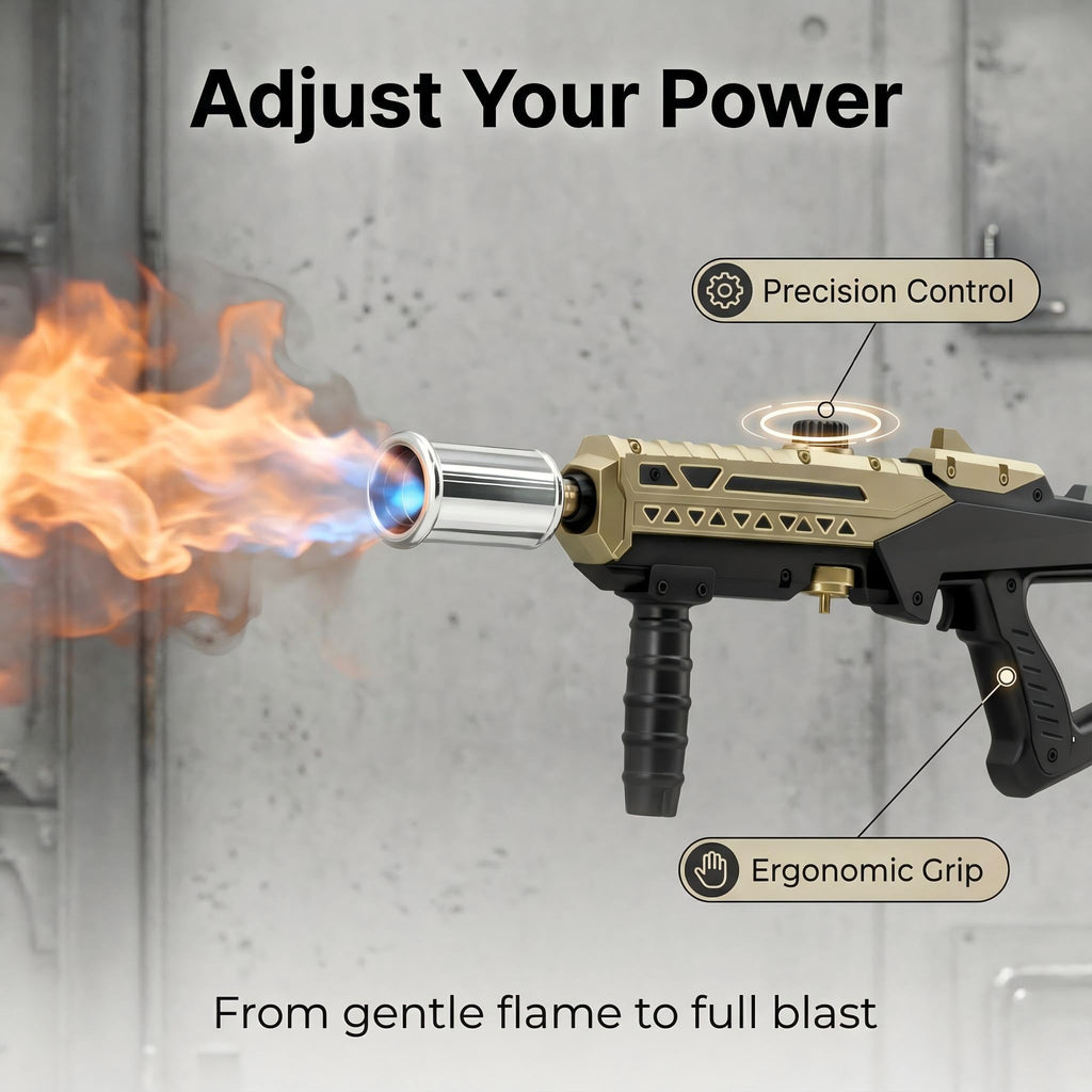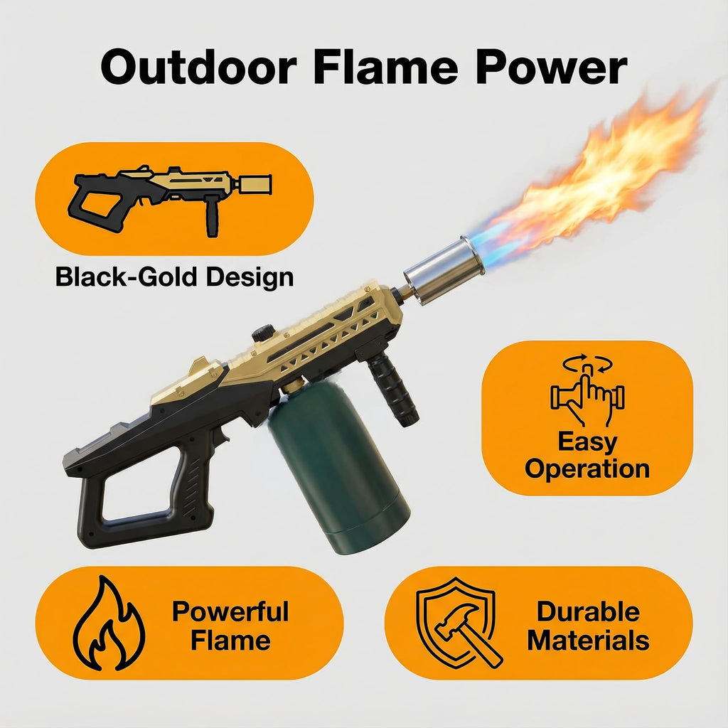- Adjustable Flame & Safe Design: The flame intensity is easily adjustable via the precision control valve, allowing you to switch between a gentle flame for baking and a strong flamethrower for heavy-duty tasks. Built-in safety lock prevents accidental ignition, and the ergonomic non-slip handle ensures a comfortable and secure grip during use