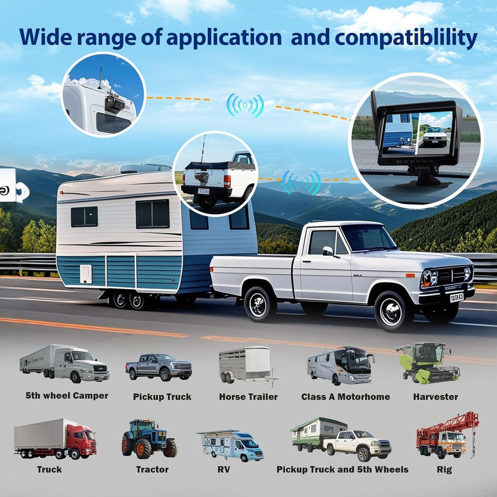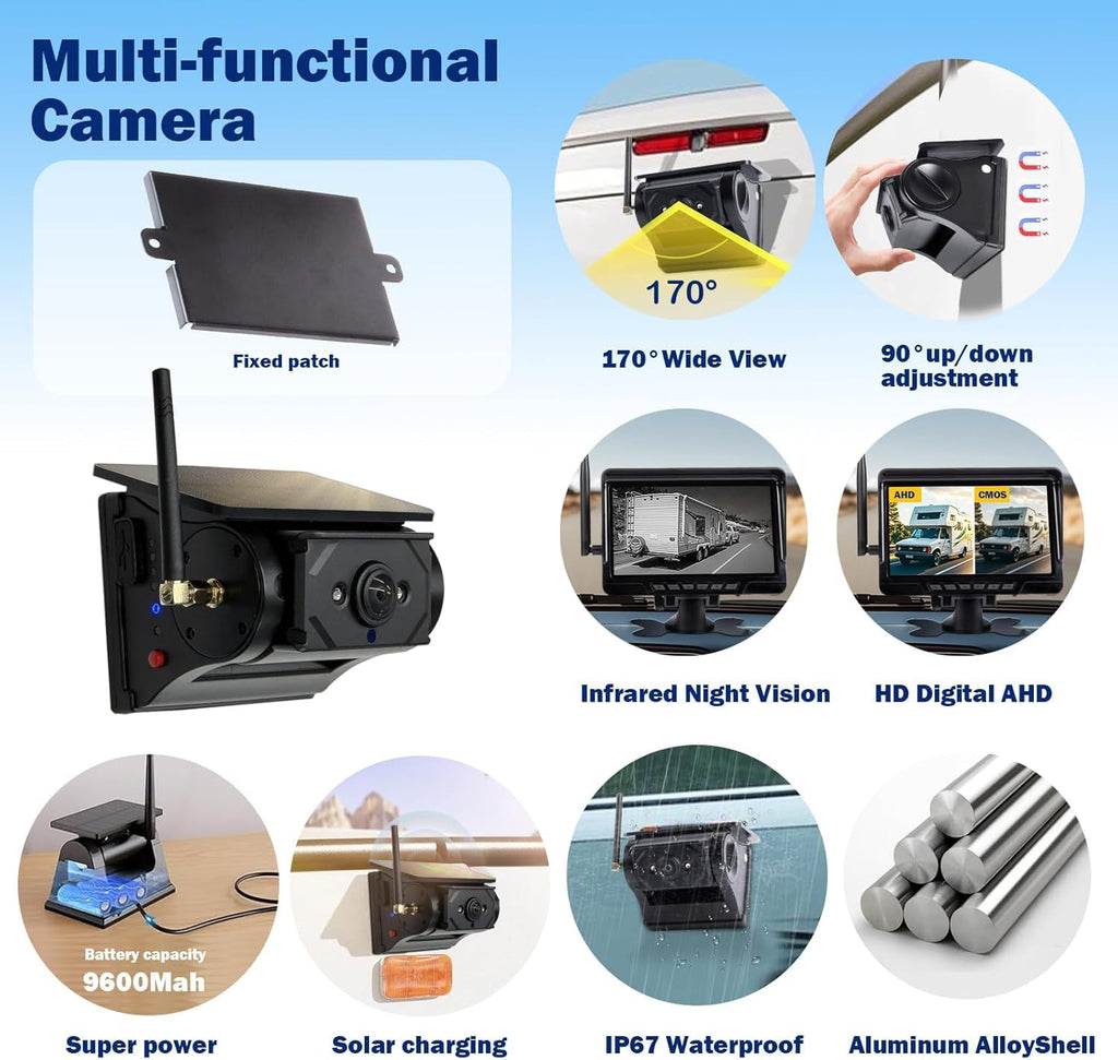 Solar Wireless Backup Camera with Magnetic, 7" HD 1080P Recording Monitor, Alarm Function, Night Vision, Vehicle Back up Cameras for Car RV Truck Trailer Camper SUV
