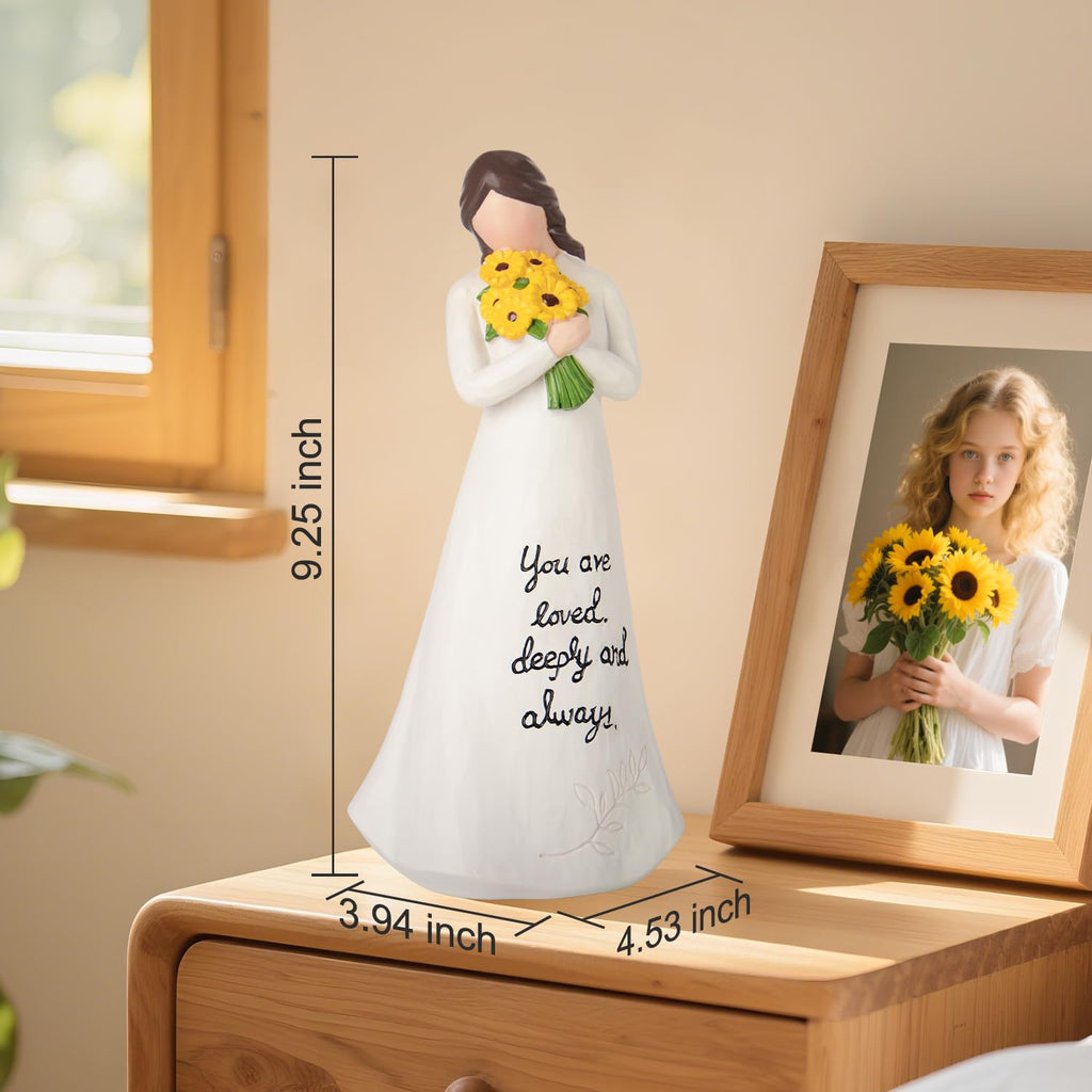 • Heartfelt Sentiment: The touching message "You are loved, deeply and always" is beautifully engraved on this sunflowers collectible figurines, making it the perfect friendship gifts for women to express your love, affection, and appreciation for the special women in your life.