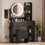 YITAHOME Makeup Vanity Desk with Mirror and Lights, Vanity Table Set with Power Outlets, Storage Drawer, Chair and 3 Shelves, Bedroom, Black