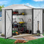 - ALL-WEATHER PRACTICALITY- Thickened galvanized steel and a durable frame harmonize to offer this outdoor storage shed great rust protection; Overlapping wall panels work with tilted roof to prevent rainwater from gathering or seeping in for year-round use.