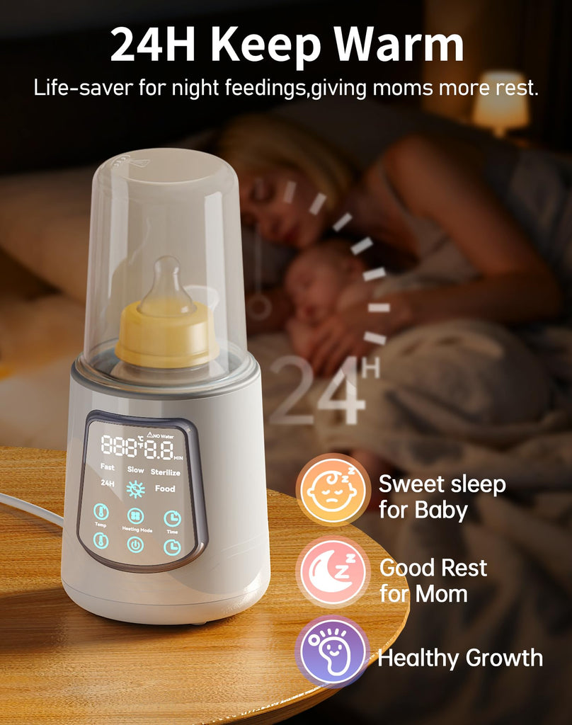 - Night Feeding Friendly:Keeps milk warm overnight with 24H function.Ideal for multiple feeding attempts.Features a nightlight, perfect for tiring nights.Eliminates darkness hassle,ensuring a pleasant feeding experience for baby and parents