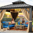- PRIVACY AND PROTECTION - With fully enclosed double-sided zippers and a double trail system, the hardtop gazebo provides grey polyester cloth and black mesh sidewalls. These materials offer protection from rain and UV rays while ensuring good ventilation and privacy, creating a comfortable space for family gatherings.