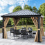 • DOUBLE-LAYER SIDED WALL DESIGN - This hardtop metal outdoor gazebo boasts fully enclosed sidewalls equipped with a dual-zipper system for easy access and a double-track mechanism for smooth operation. The combination of grey polyester fabric and black mesh provides excellent ventilation, unobstructed views, and protection against rain and UV rays, all while enhancing your privacy.