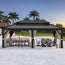 - PRIVACY AND PROTECTION - With fully enclosed double-sided zippers and a double trail system, the hardtop gazebo provides grey polyester cloth and black mesh sidewalls. These materials offer protection from rain and UV rays while ensuring good ventilation and privacy, creating a comfortable space for family gatherings.