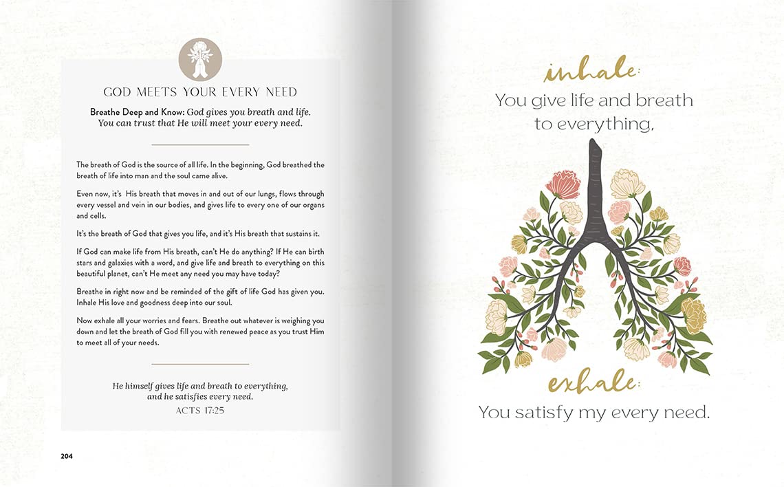 Breath as Prayer offers: More than 80 breath prayers focused on Scripture, along with brief meditations Gorgeous original full-color illustrations A quick-start how-to guide to refer to as needed Guidance on how to implement a breath prayer practice The science behind breath work and prayer and why it works An invitation to reflect on the effect of breath prayers on your body